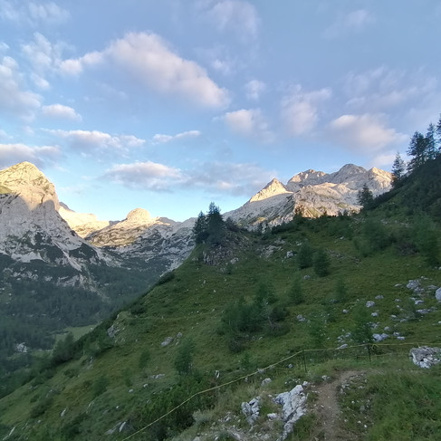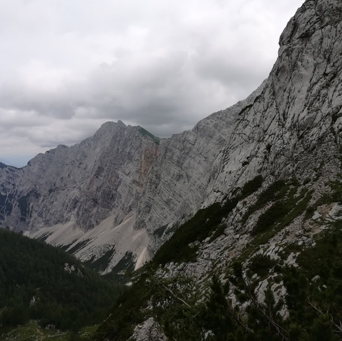 Vom Savetal und der Vrata wandern wir nach Süden zur Krma. Im Übergang von der Enge der Oberen Krma zur Nähe aufragender Bergspitzen erfahren wir Respekt vor dem Triglav-Massiv. Wir fühlen uns am höchsten Punkt der Etappe und nahe des Konjski sedlo intensiv eingebunden in die Vielfalt und das Bizarre der Bergwelt. Die teilweise seilgesicherten Abschnitte vermitteln uns beim Blick nach S/SW eine gewisse Leichtigkeit und Entdeckerfreude.